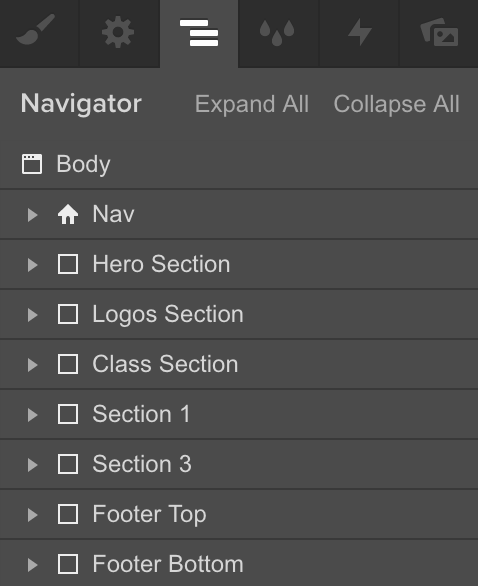 The navigator tab gives you a clear breakdown of elements and their parents, as well as where they are located within the page.
